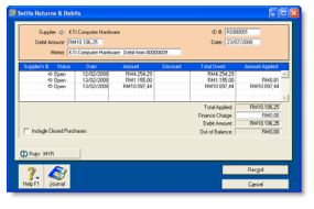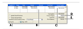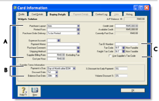 Click the zoom arrow to alter the terms for this purchase only. If you want to change the credit terms for all future purchases to this supplier, you must make that change on the Buying Details tab of the supplier's card. |