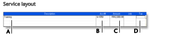 The following illustration shows the fields for a purchase with a Service layout and a Bill status. This also applies to the Professional and Miscellaneous layouts.