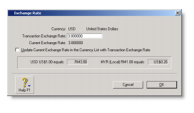 Example The original balance in your British bank account is zero and you transfer £100 at an exchange rate of $3.00 to the pound to it. The £100 is converted to S$300 and your MYOB software posts £100 to the British bank account and $200 to the British bank exchange account.