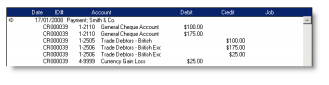 At the time a currency gain or loss is realised, that is, a payment is received or made, an automatic posting is made to the Currency Gain/Loss account and to the exchange account for the foreign currency.
