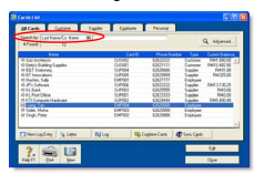- Go to the Card File command centre and click Cards List. The Cards List window appears.
