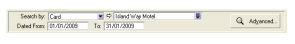 Filter your search using the Search By and date range fields. For example, to search for all transactions made during January 2009 relating to the customer Island Way Motel, you would specify the following filters on the Card tab.