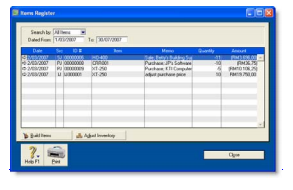 | Items Register | inventory item transactions for a particular date range. This includes inventory adjustments, auto-build and move items transactions. |