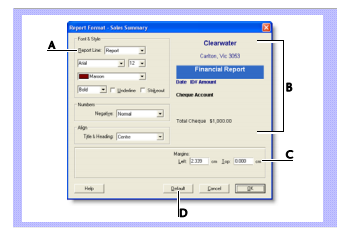 - If you have formatted a report and want to change it back to its original format, click Default.